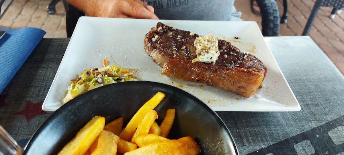 Been here on two separate visits and even though I didn’t like the food the first time we came back because of the nice vibe and big menu so I had plenty else to try. What I didn’t like was the chicken burger, it didn’t seem seasoned at all and the meat itself didn’t taste very fresh to me. Beef burger was great, although the first time they asked how it should be done, the second time they just brought it well done without asking. Salads are good and brought in a nice bread bowl which I really liked. I would have liked the burger to come with fries or at least some sort of meal deal possibly with onion rings as well as 6 euros is a bit much. And they bring them as starters which is just a little weird for a fast food place. Drinks are okay but could use a more interesting dessert menu